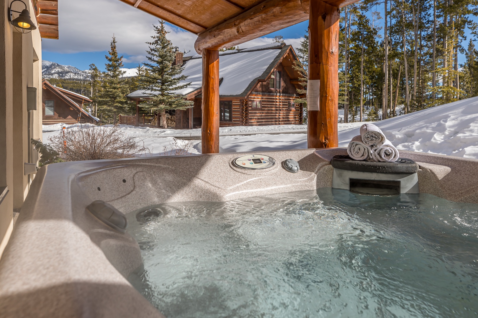 Private Hot Tub: Unwind in the hot tub under the stars on the covered deck, or enjoy the stunning mountain views from the uncovered patio.
