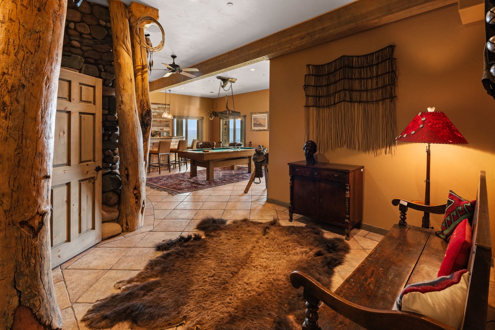 • Vaulted great room with floor-to-ceiling windows framing stunning views of Lone Peak and the Spanish Peaks.