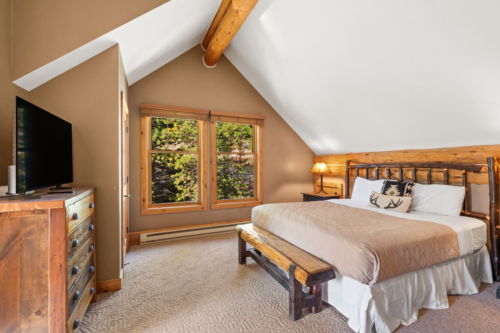 • Primary suite: Located upstairs off the main level is a King bed, end suite bath with soaking tub & Shower, and vaulted ceilings.