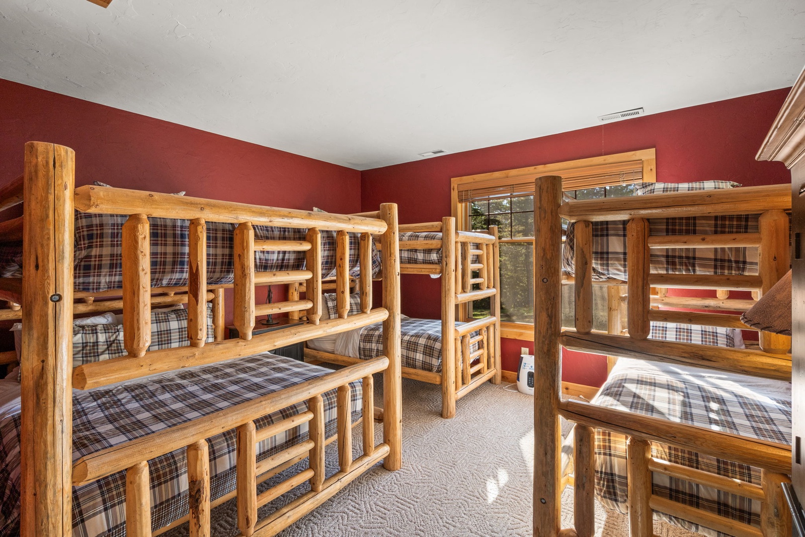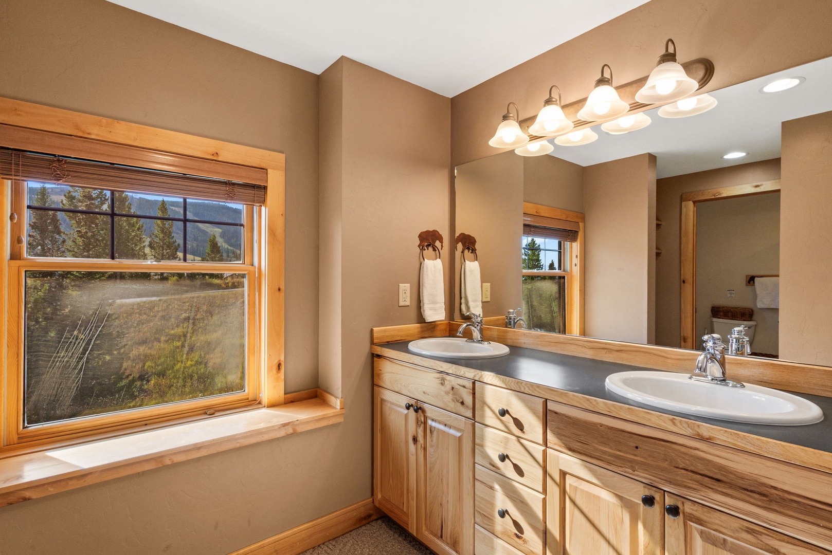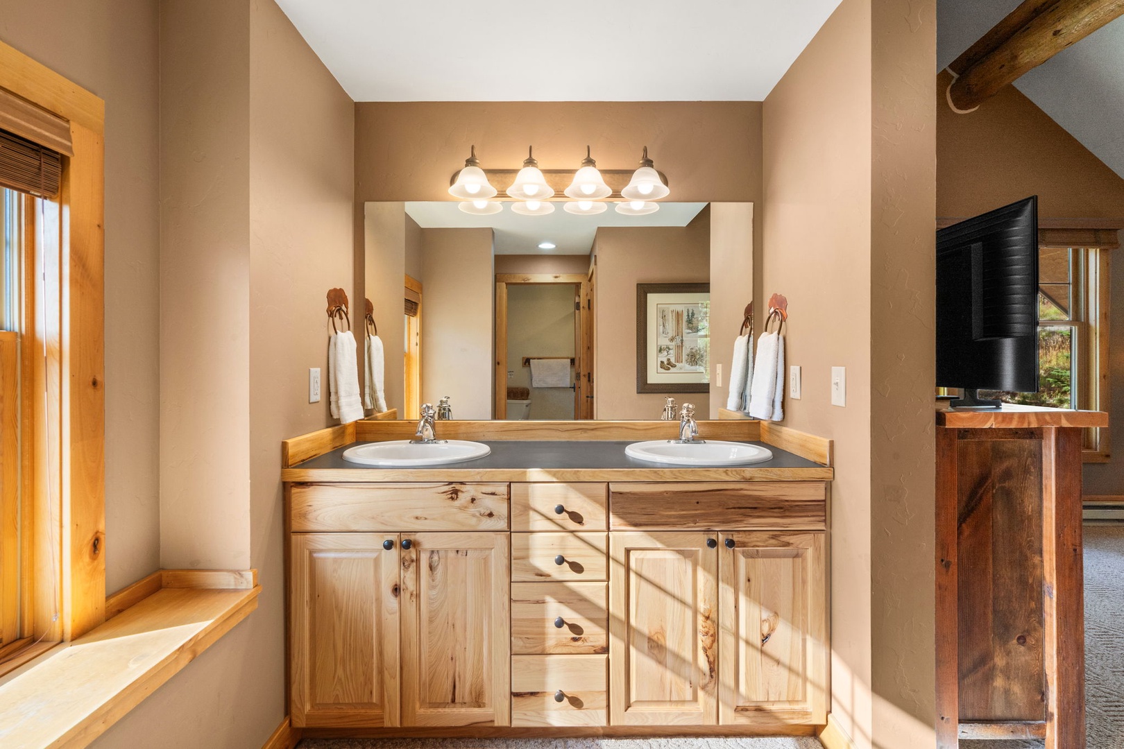 • Guest bedrooms: Both the Main Level Queen Bedroom and Main Level King Bedroom share a full bath. Downstairs is the bunk room that shares a full bath with the living area.