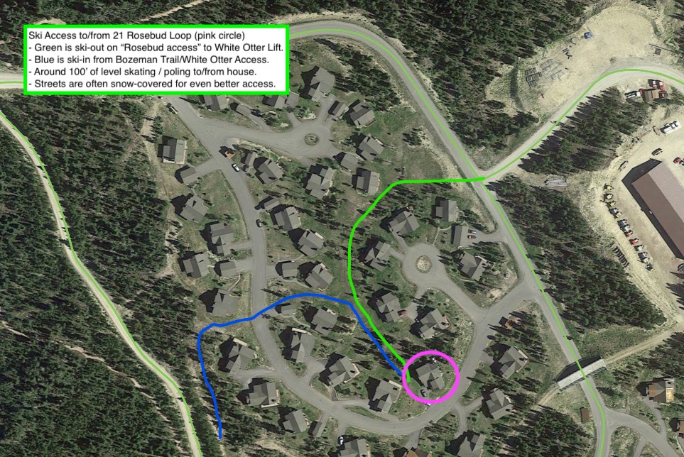 From the property you can take Rosebud access or White Otter Access that will take you to the base of the lift! That lift is White Otter 2.