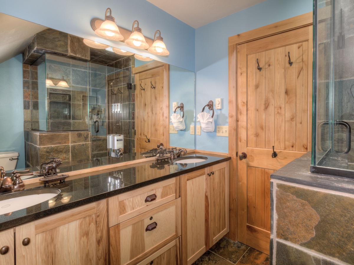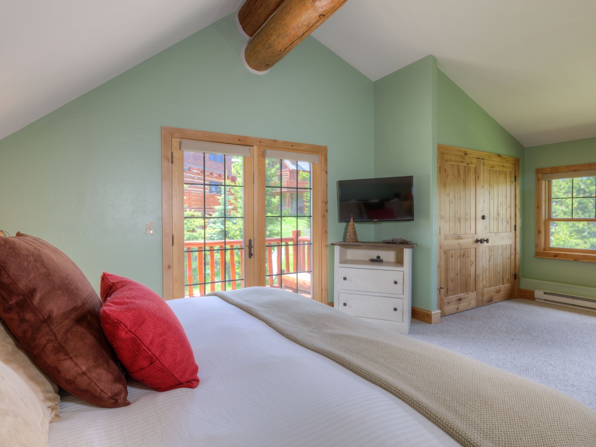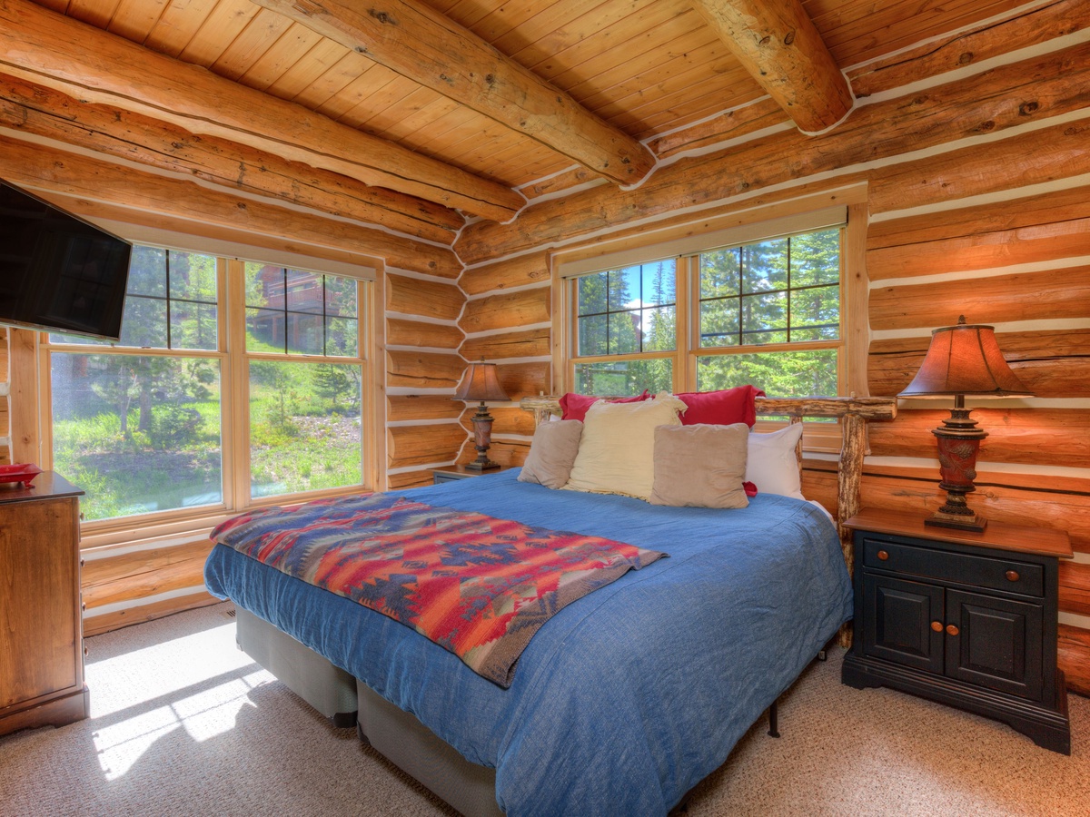 - Upstairs: Two master bedrooms located at opposite ends of the cabin, each with a king bed and en suite full bathrooms featuring walk-in showers.