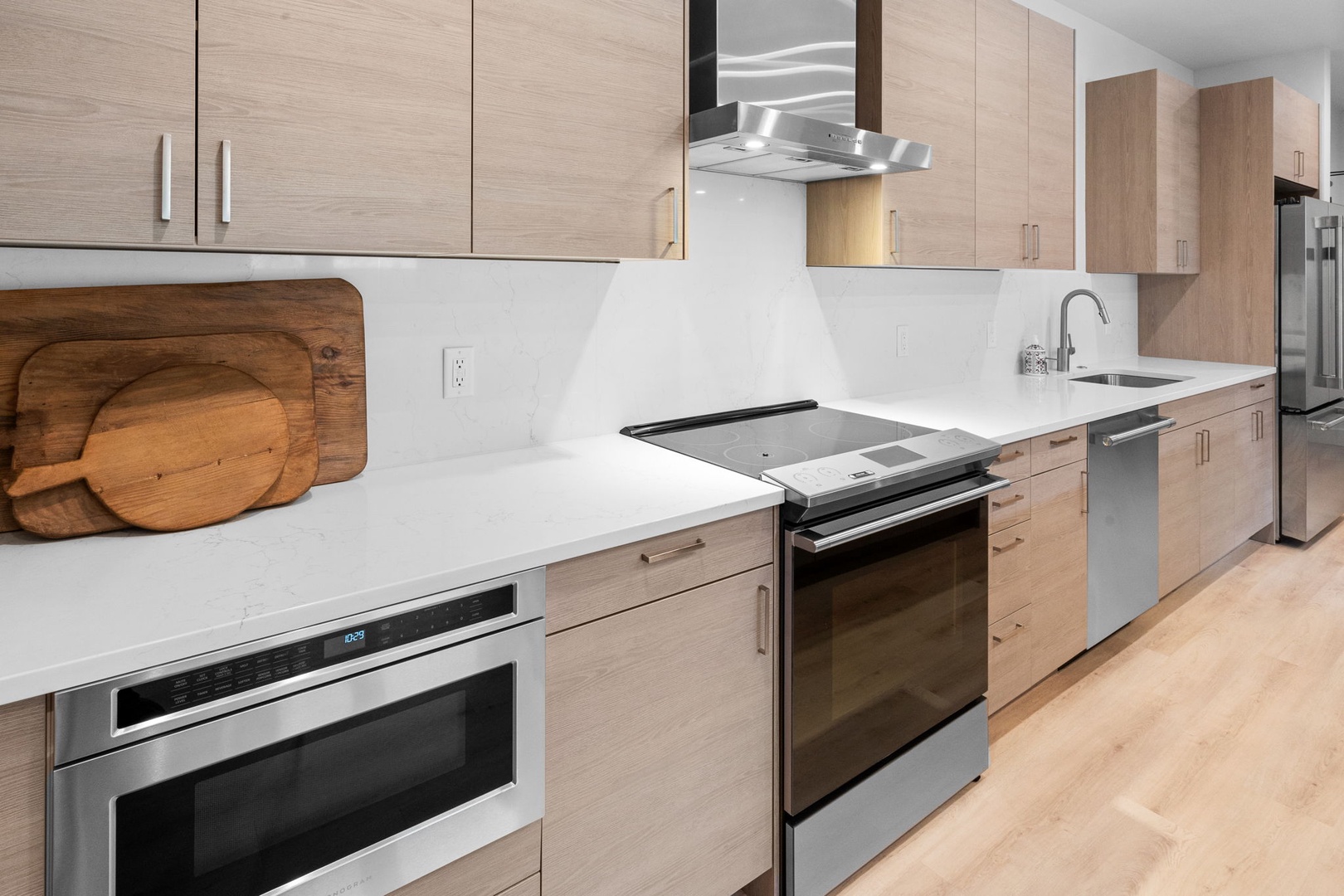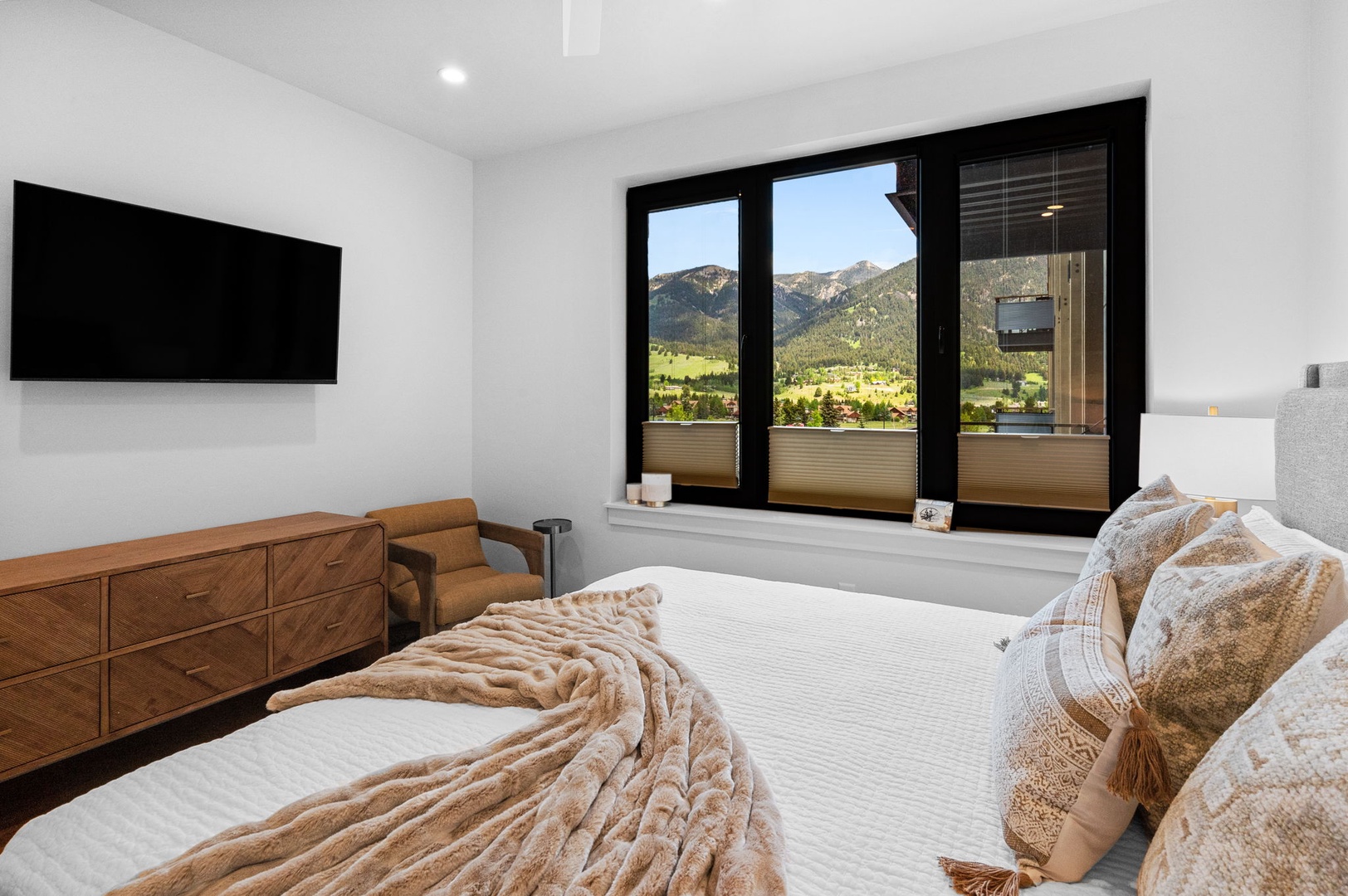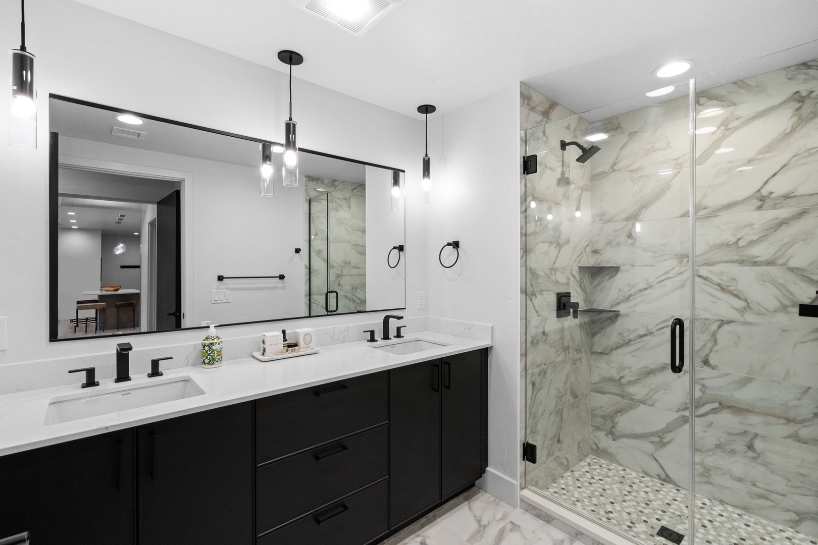 Welcome to your perfect luxury getaway. An ideal escape designed for comfort, style, and unforgettable memories. This stunning, newly built luxury home offers three spacious bedrooms and three and a half bathrooms, making it perfect for families, friends, or couples traveling together. The elegant master suite features a king-sized bed, a flat-screen TV, and a spa-like en-suite bathroom with a walk-in shower. The second bedroom provides a cozy queen bed and its own private en-suite, while the third bedroom is perfect for kids or groups with two twin-over-full bunk beds and easy access to a full bathroom.