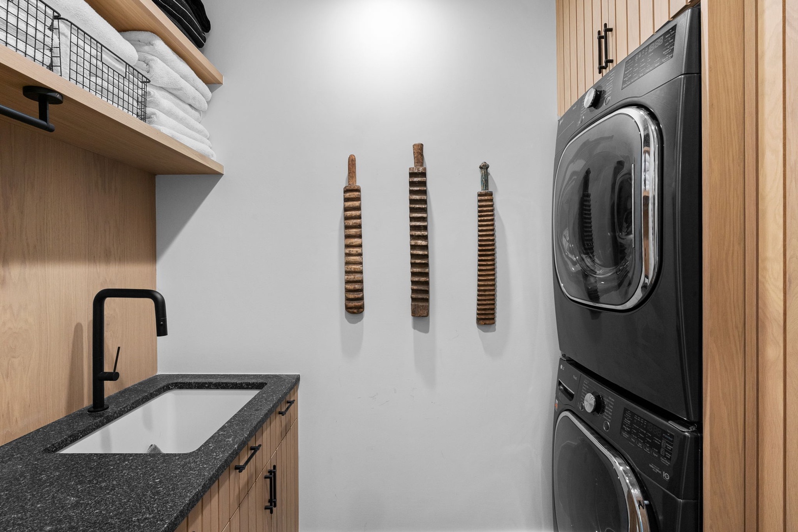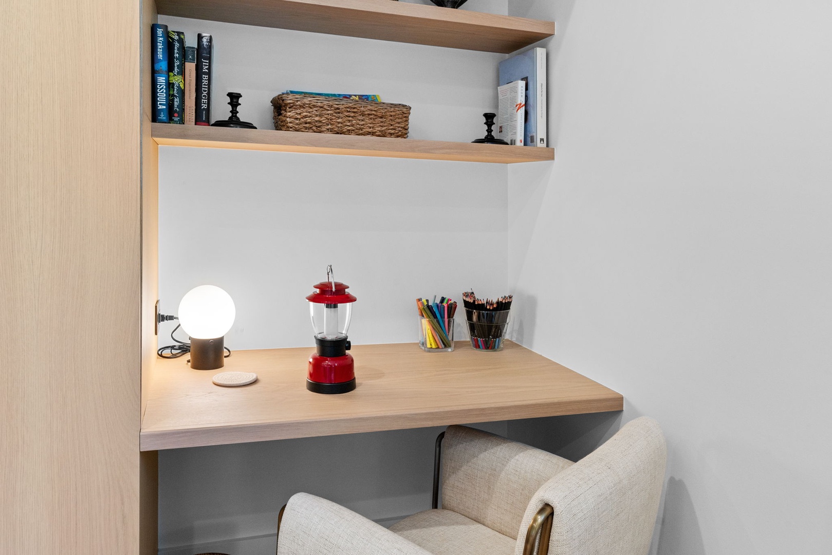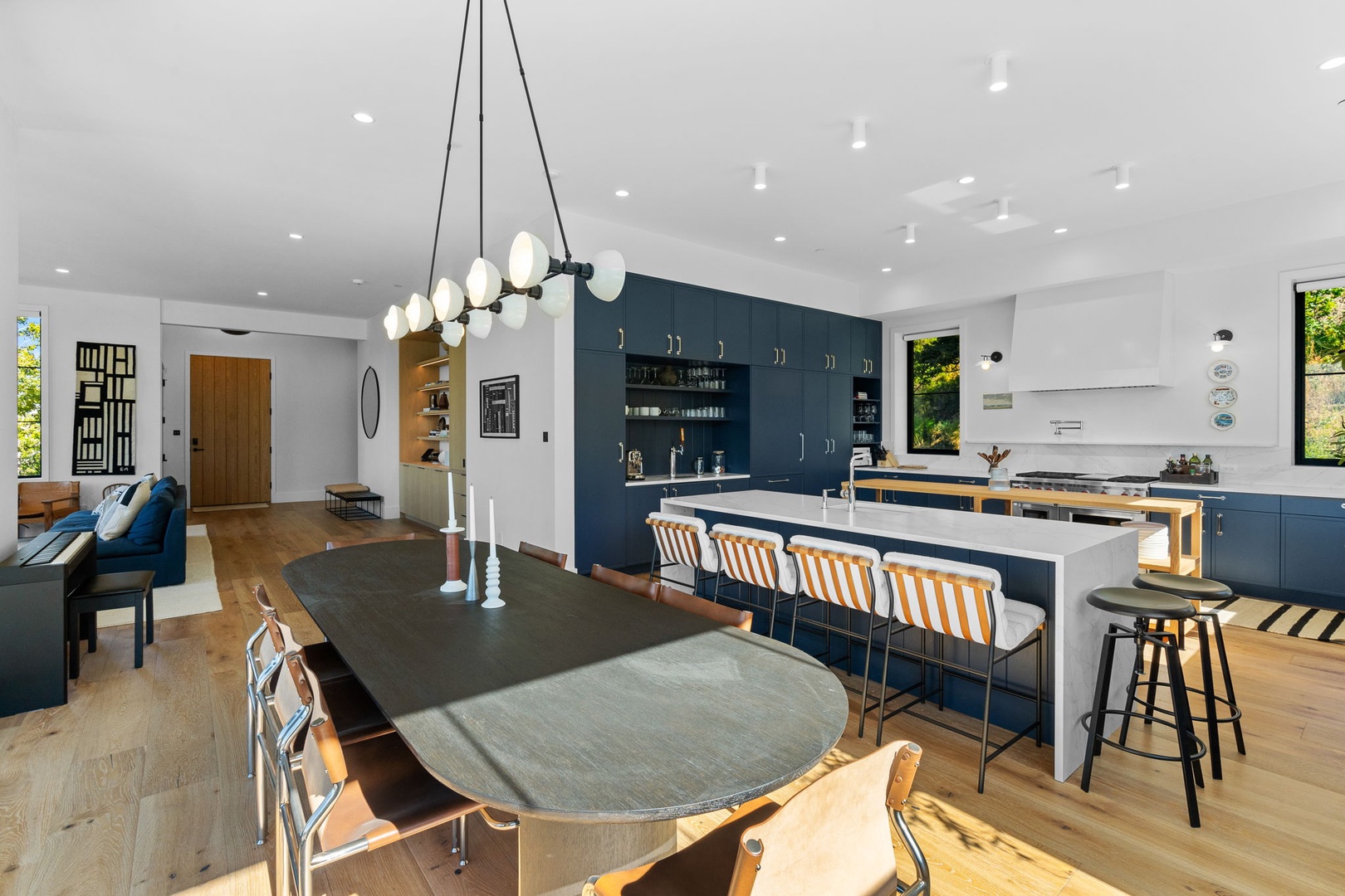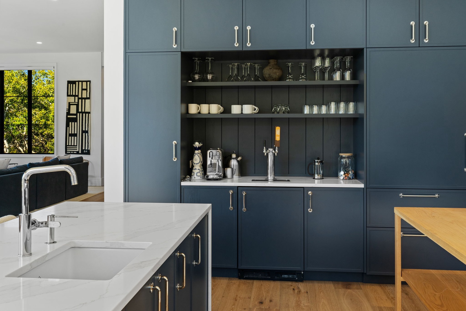 • A fully stocked modern kitchen with stainless steel appliances and coffee bar