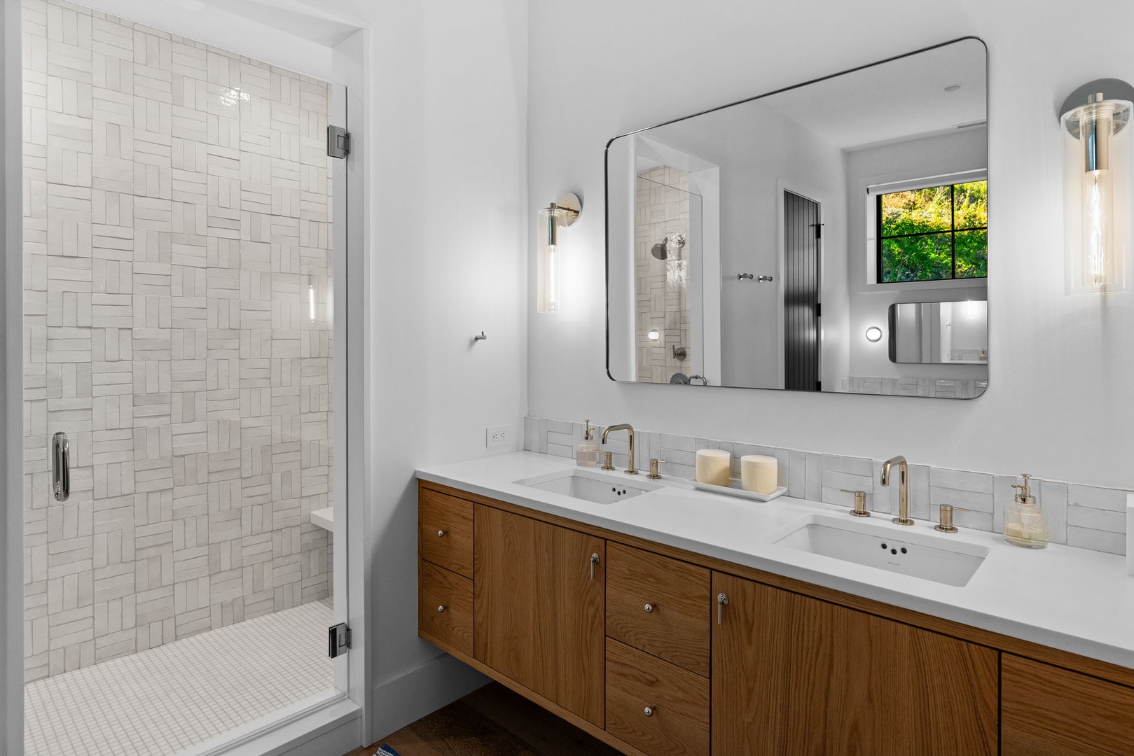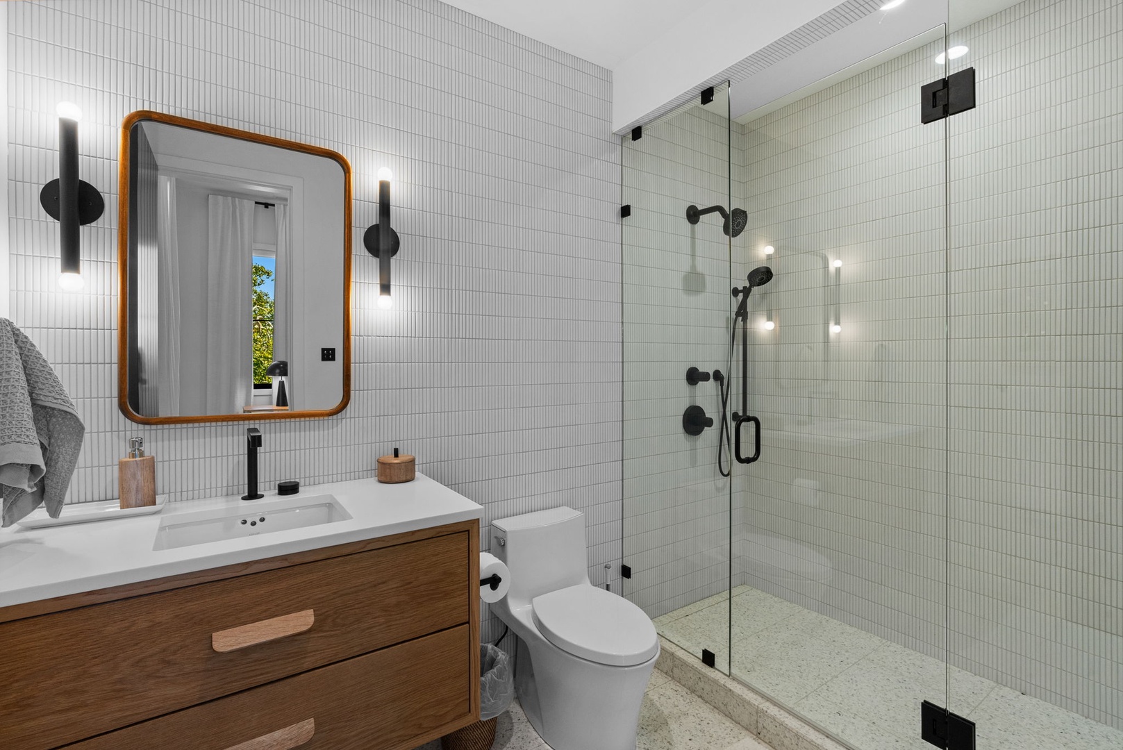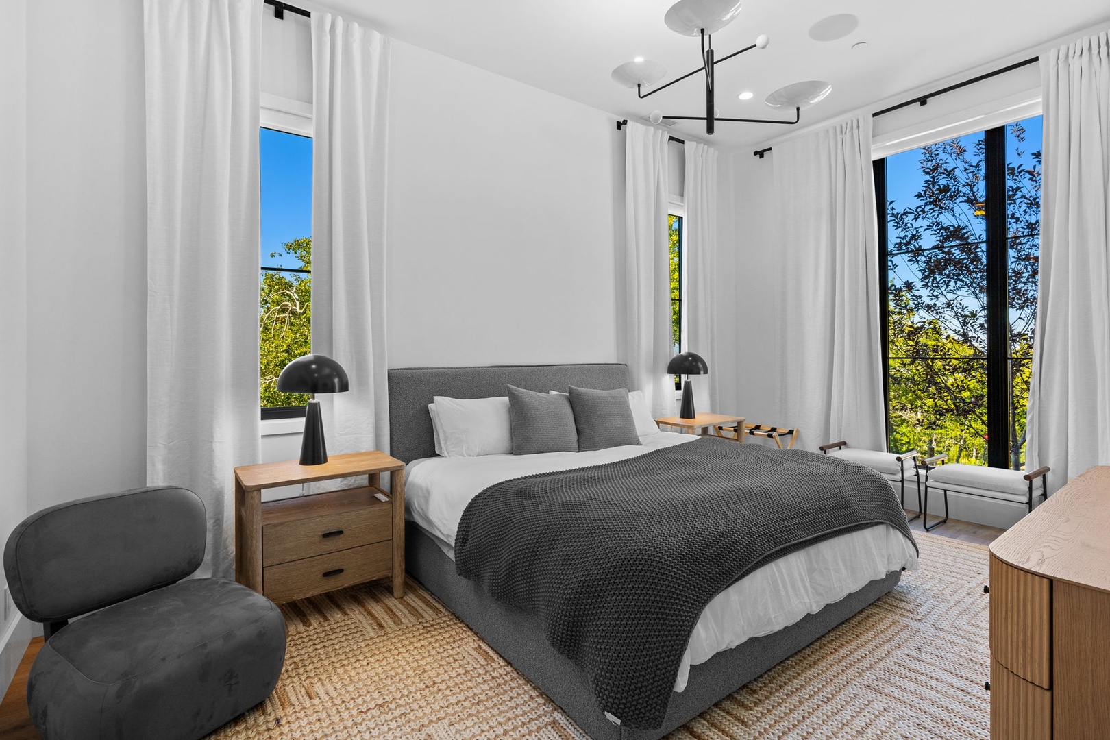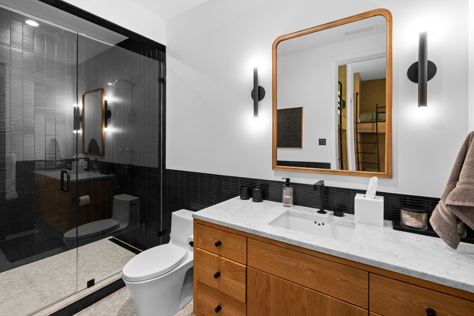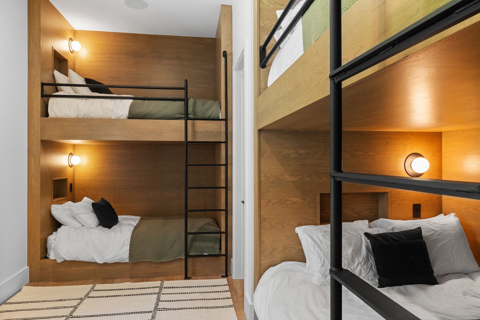 • Two additional bedrooms with plush bedding and forest/mountain views. The Guest Bedroom has a King size bed with private en-suite bathroom. Bedroom#3 is the bunk room with one Queen over Queen & Full over Full sets of beds and its own private en-suite bathroom.