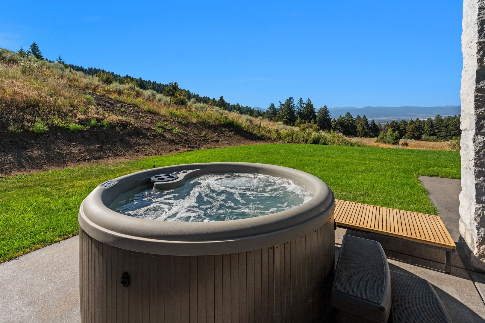 • Private hot tub with unobstructed views, ideal for soaking under the stars